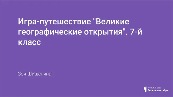 Данная игра рекомендуется как внеклассное мероприятие с целью интеграции знаний по истории, географии, литературе для развития интереса к изучаемым предметам. В ходе игры учащиеся совершают кругосветное путешествие, повторяя маршрут экспедиции Магеллана, выполняют различные задания по истории географических открытий, знакомятся с литературными произведениями, встречаются с историческими персонажами, получают «морскую почту», рассказывают морские истории.