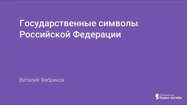 Открытый урок с целью совершенствовать представление учащихся о государственных символах РФ; воспитывать чувство любви и уважения к своей стране, гражданственности и патриотизма, уважительного отношения к государственным символам. Урок подкрепляется наглядным и музыкальным материалом (слушание и исполнение), создает торжественную атмосферу в классе.
