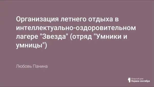 Работа с детьми в классах с углубленным изучением предметов должна быть построена так, чтобы они почувствовали, что физика – это удивительный предмет. Поэтому, кроме обучения по школьной программе, в летнее время на базе школы организуется интеллектуально-оздоровительный лагерь. Программа работы с отрядом «Умники и умницы» составлена с учетом интереса детей к походам и приключениям.