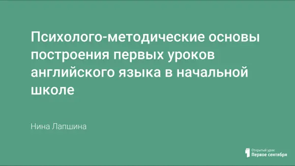 Психолого-методические основы построения первых уроков английского языка в начальной школе