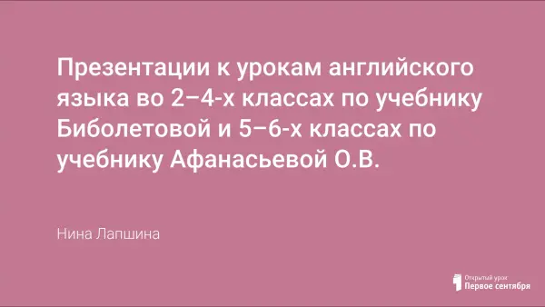 Презентации к урокам английского языка во 2–4-х классах по учебнику Биболетовой и 5–6-х классах по учебнику Афанасьевой О.В.