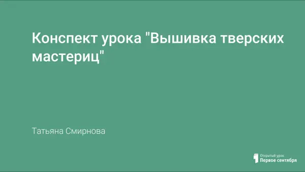 Урок знакомит учащихся с тверской вышивкой, её особенностями. Готовит их к проектной деятельности, дает возможность совершенствовать умения и навыки при вышивке крестом.