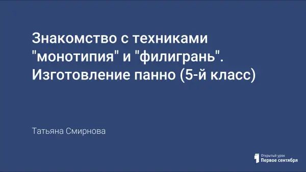 Урок технологии в 5-м класс призван познакомить с техниками «монотипия» и «филигрань» (квиллинг). Учащиеся изготовливают панно, используя данные техники, что способствует формированию и развитию познавательного интереса к предмету, к виду деятельности, развитию самостоятельности, формированию у учащихся навыков культуры труда.