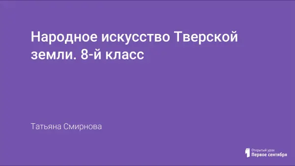 Данный курс предполагает знакомство и изучение народных промыслов Тверской области. Знакомясь с этим материалом, учащиеся узнают о творчестве и эстетике Тверского края. Народные ремесла во все времена считались ценными, красивыми и модными. Наш края богат умельцами и мастерами. Изучая этот курс, мы совершим путешествие по городам Тверской области, где издавна существуют и процветают народные промыслы.