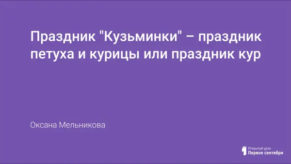 Автором разработан праздник, в котором реализуется творческий потенциал детей; расширяется круг знаний о русских народных праздниках, дети знакомятся с обычаями Кузьминок, приобщаются к традициям народной культуры, национальной духовности.