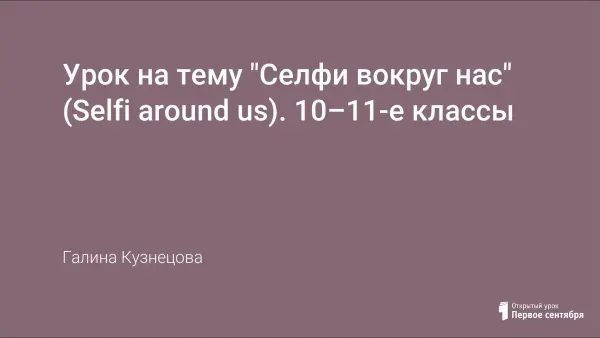 В 2013 году слово «сэлфи», обозначающее популярное явление, было объявлено Оксфордским словарём словом года. С тех пор «делать снимки себя» стало ещё более популярным, особенно в социальных сетях. Сейчас «сэлфимания» захватила людей всех профессий и возрастов, политических взглядов и убеждений, религий и национальностей. Зачем люди делают сэлфи? Какие опасности таит в себе это занятие? Надо ли запрещать сэлфи? На эти вопросы учащиеся и попытаются ответить в ходе данного урока.