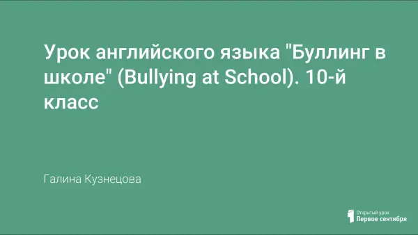 В настоящее время одной из актуальных проблем является проблема психологического здоровья нации. Урок Bullying at School (Буллинг в школе) рассматривает один из негативных факторов, влияющих на успешность ребёнка в школе. Этот урок к теме "Is It Easy to Be Young" по УМК Кузовлева В.П. в 10-м классе, поскольку сегодня проблема булинга актуальна для школ всего мира. В ходе урока ученики знакомятся с понятием буллинг, его типами и формами проявления.