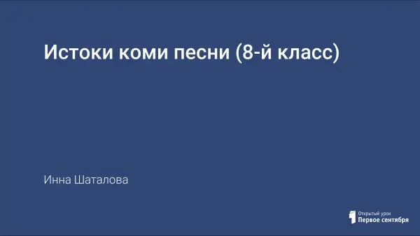 Урок по литературе в 8-м классе "Истоки коми песни" следует после изучения темы «Русское народное поэтическое творчество» и знакомит учащихся с истоками коми народных песен, способствует формированию интереса учащихся к ценностям родной истории и культуры.