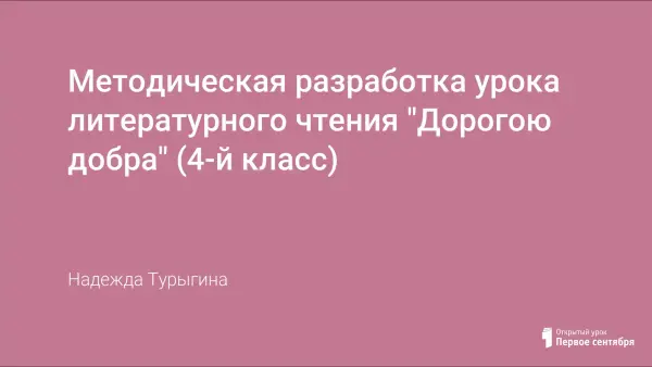 Методическая разработка урока литературного чтения "Дорогою добра" (4-й класс)