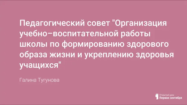Цель педагогического совета: провести системный анализ педагогической деятельности по формированию здорового образа жизни и укреплению здоровья учащихся и определить пути и способы совершенствования работы в данном направлении.