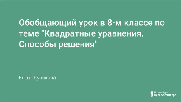 Обобщающий урок в 8-м классе по теме "Квадратные уравнения. Способы решения"