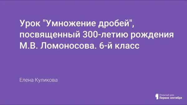 Урок "Умножение дробей", посвященный 300-летию рождения М.В. Ломоносова. 6-й класс