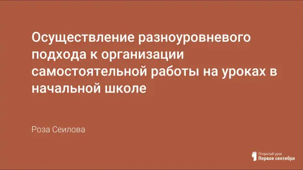 В статье изложен опыт работы учителя по осуществлению дифференцированного подхода к организации разноуровневой работы на уроках на начальной ступени образования. Эта работа позволит учителю создать благоприятные условия для гуманизации образования, творческого развития каждого ученика с учетом его индивидуальных способностей.