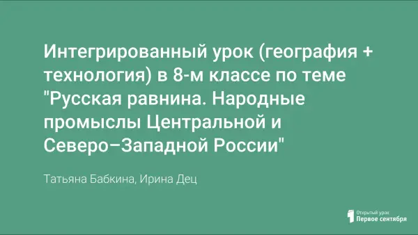 Интегрированный урок (география + технология) в 8-м классе по теме "Русская равнина. Народные промыслы Центральной и Северо–Западной России"