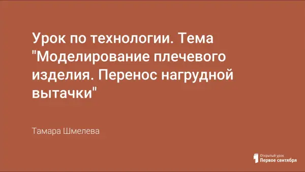 Урок по технологии. Тема "Моделирование плечевого изделия. Перенос нагрудной вытачки"