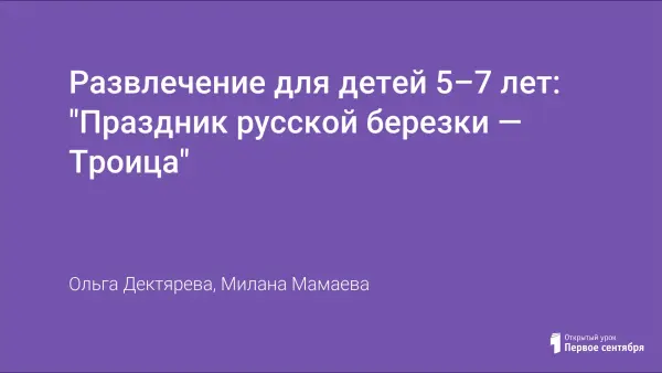 Занятие рекомендовано для детей старшего дошкольного возраста и позволит педагогам познакомить детей с русским народным праздником Троица, который отмечается на Руси весной или в начале лета. В нём представлены обряды и обычаи русского народа, которые из глубины веков дошли до наших дней. Символом этого праздника является русская берёзка.