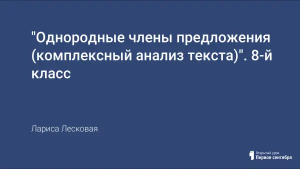 Во время урока «Однородные члены предложения» проводится комплексный анализ текста, закрепляются навыки орфографического и пунктуационного разбора, отрабатывается постановка знаков препинания в предложениях с однородными членами, обобщающими словами, развиваются творческие способности учащихся. Материал пробуждает чувство прекрасного, любви к родной природе.