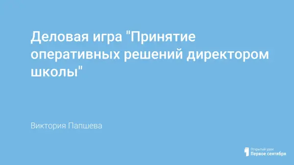 Игра ставит своей целью проверку теоретической и практической готовности директора школы решать экспромтом различные вопросы, которые ставит перед ним каждый день школьной жизни, быстро, с позиций управленческой деятельности ориентироваться в большом потоке внешней и внутренней информации.