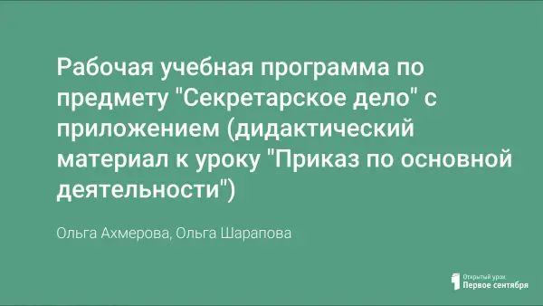 Рабочая учебная программа по предмету "Секретарское дело" с приложением (дидактический материал к уроку "Приказ по основной деятельности")