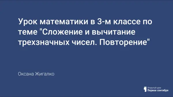 Целью урока было повторить и закрепить умения складывать и вычитать трехзначные числа, решать составные задачи, развивать внимание, логическое мышление и интерес к изучению математики.
