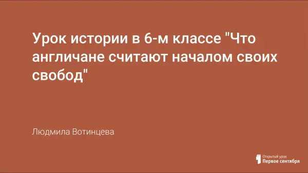 Учащимся 6-х классов трудно усвоить понятия «свобода», «закон», «парламент», поэтому на уроке используется большое количество наглядного материала: презентация учителя, презентации учеников; устанавливается связь с современностью (например, с российским парламентом). Уровень усвоения материала урока проверяется тестом.