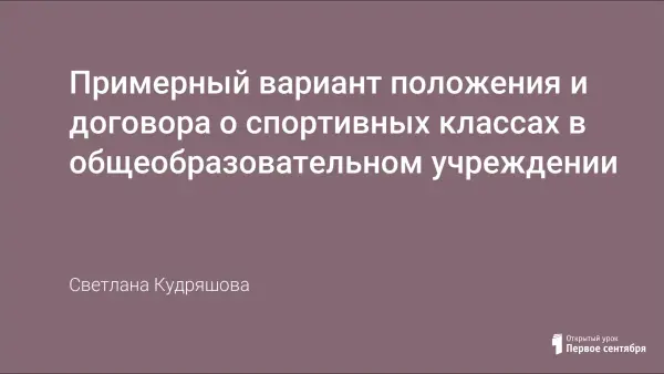 С целью рационального совмещения учебно-воспитательного и учебно-тренировочного процессов в общеобразовательных учреждениях могут создаваться спортивные классы. Приводим пример договора между образовательным и спортивным учреждением, а также положение о спортивном классе с углублённым учебно-тренировочным процессом.