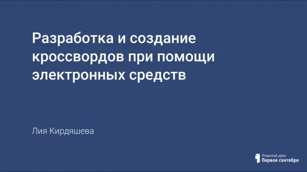 В исследовательской работе «Разработка и создание кроссвордов при помощи электронных средств» раскрыта история возникновения кроссвордов. Показаны различные способы, приемы составления математических кроссвордов. Рассмотрены различные их виды. Изучена компьютерная программа для создания кроссвордов: Microsoft Excel.