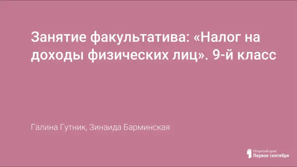 Занятие факультатива: «Налог на доходы физических лиц». 9-й класс