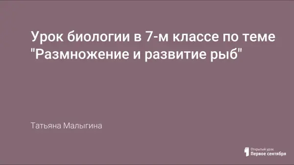 Урок проводится в ходе изучения биологии (раздел животные) в 7-м классе. Целью урока является возможность показать учащимся особенности размножения и развития рыб, раскрыть разнообразные формы заботы о потомстве как приспособление к выживанию вида.