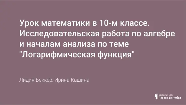 Урок математики в 10-м классе. Исследовательская работа по алгебре и началам анализа по теме "Логарифмическая функция"