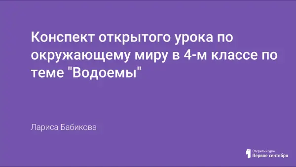 Автором поставлены цели урока: познакомить с растениями и животными - обитателями пресных водоемов; расширить представление обучающихся о природных сообществах. Формировать представления обучающихся о жизни пресного водоема; расширять знания о растениях и животных пресного водоема, их приспособленности к условиям жизни; выявить связи между обитателями пресного водоема; показать необходимость бережного отношения к обитателям водоема и их охраны.