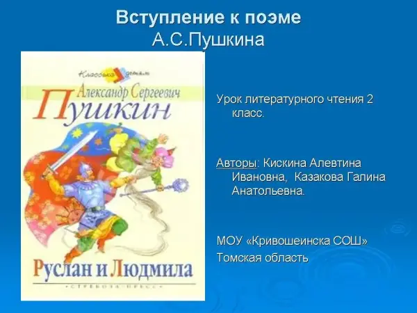 Цели занятия – ознакомить обучающихся с творчеством А.С. Пушкина, со вступлением к прологу из поэмы "Руслан и Людмила".
