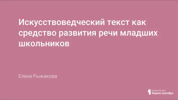 Родной язык - это предмет, которому принадлежит решающая роль в духовной жизни ребенка. Это инструмент познания, мышления, развития. В статье представлена методика работы над развитием речи младших школьников посредством искусствоведческого текста.