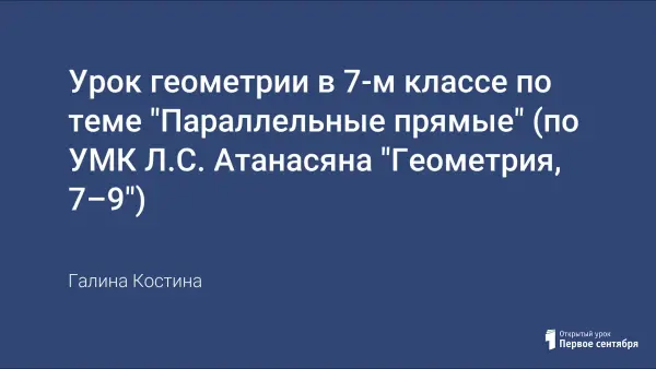 Урок проводится с целью закрепления учащимися определения параллельных прямых, отрезков, секущей; видов углов, полученных при пересечении двух прямых третьей; признаков параллельности прямых; свойств параллельных прямых; аксиомы параллельных прямых и следствий из неё. Изученный материал используется при решении задач.