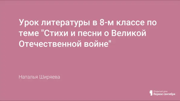 На занятии происходит знакомство со значением поэзии в годы ВОВ. Прилагается презентация с песнями тех лет. Материалы данного урока помогут не только учителю литературы в подготовке к аналогичному занятию, но и классному руководителю в подготовке к мероприятиям ко Дню Победы. В комплект материалов входит разработка урока, а также электронная презентация с mp3-приложениями.