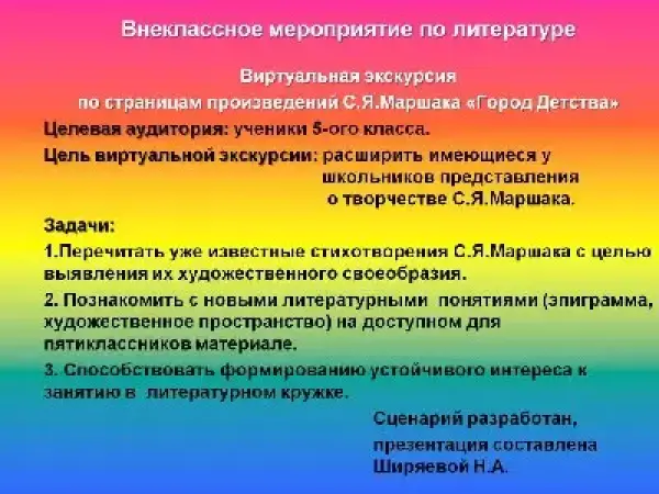 Цель виртуальной экскурсии: расширить имеющиеся у школьников представления о творчестве С.Я. Маршака.