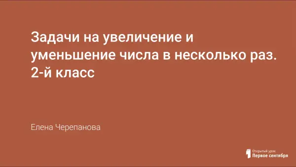 Урок математики направлен на изучение нового материала. На уроке дети познакомятся с новым математическим понятием (во сколько раз больше или меньше), научатся различать отношения «больше в ...», «меньше в ..», называть число, большее или меньшее данного числа в несколько раз. В ходе урока учащиеся знакомятся с решением задач на увеличение и уменьшение числа в несколько раз.