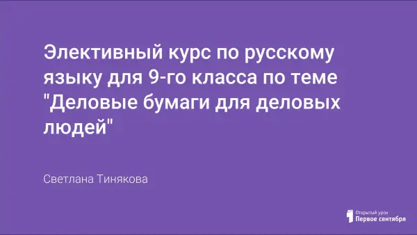 Элективный курс для учащихся 9-го класса школы. Курс предназначен для предпрофильной подготовки