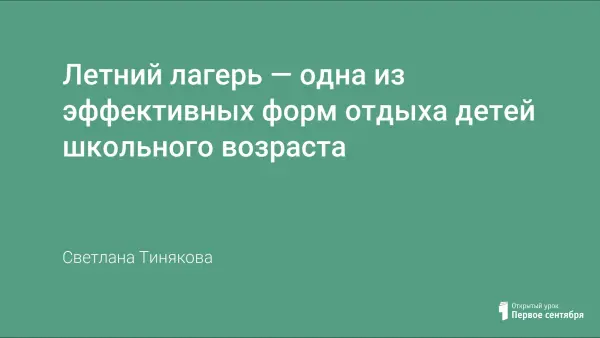 Воспитательная ценность системы летнего отдыха состоит в том, что она создаёт условия для педагогически целесообразного, эмоционально привлекательного досуга школьников, восстановления их здоровья, удовлетворения потребностей в новизне впечатлений, творческой самореализации, общении и самодеятельности в разнообразных формах, включающих труд, познание, искусство, культуру, игру.