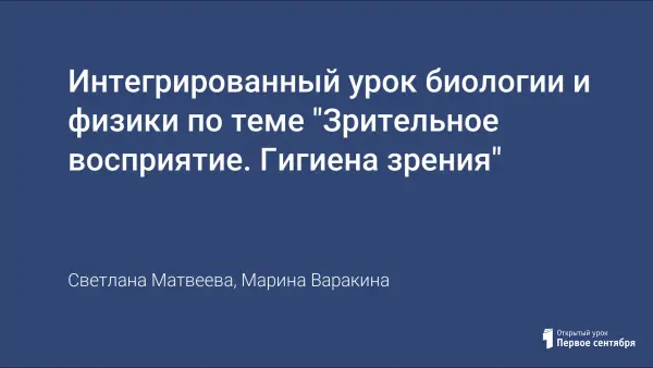 Интегрированный урок биологии и физики по теме "Зрительное восприятие. Гигиена зрения"