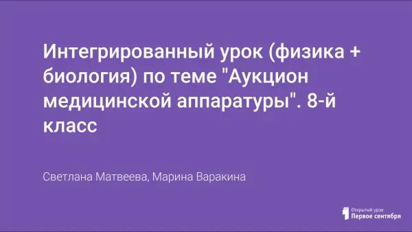 Интегрированный урок (физика + биология) по теме "Аукцион медицинской аппаратуры". 8-й класс