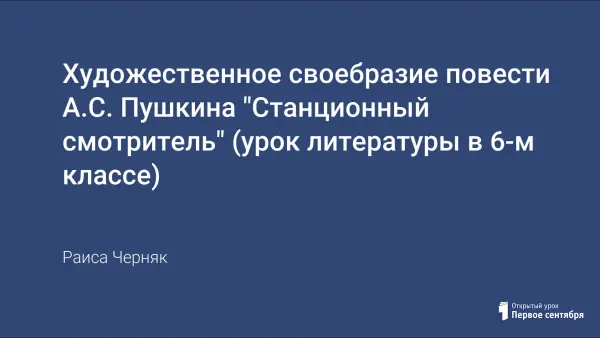 Урок проводится с целью выявить роль художественных средств выразительности (пейзажа, интерьера, художественной детали, портрета, цветовой гаммы, изобразительно-выразительных средств) в повести А.С. Пушкина “Станционный смотритель”.