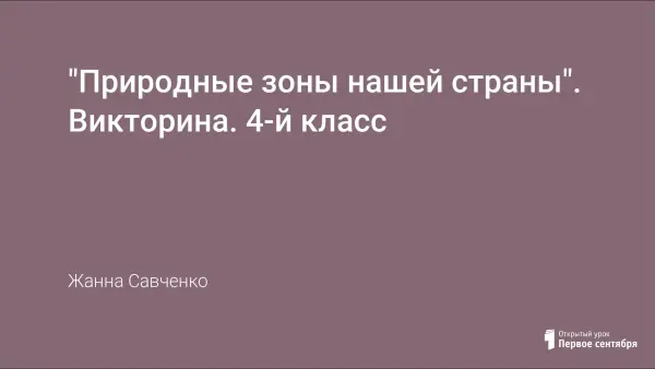 Нестандартный урок-викторина (А.А. Плешаков, 4-й класс). Занятие проводится с целью обобщения знаний учащихся о природных зонах нашей страны; воспитания гражданско-патриотических качеств личности; развития чувства коллективизма, бережного отношения к природным богатствам своей страны.