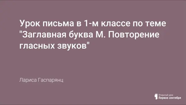 Предлагается разработка урока обучения письму в 1-м классе, на котором учащиеся знакомятся с буквой М. Игровая форма урока, разнообразие упражнений и видов работ способствуют привитию интереса к предмету.