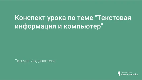Учащимся предлагается проанализировать путь развития письменности, начиная с древности и до момента ввода текстовой информации в память компьютера. Важно, чтобы учащиеся поняли, что процесс представления любой информации в виде, удобном для хранения, сводится к процессу кодирования. Для представления текстовой информации используется кодовая таблица, позволяющая привести в соответствие компьютерный алфавит с его десятичным и двоичным кодами (ASCII).