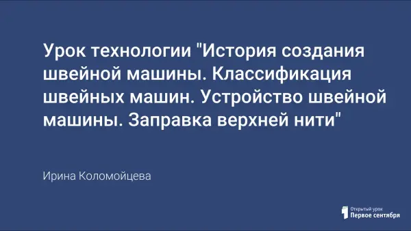 Презентация к уроку выполнена в программе PowerPoint. В презентации использованы видеофрагменты учебного электронного издания "Технология" (5–9) (раздел 4.2 Машиноведение: история швейной машины).