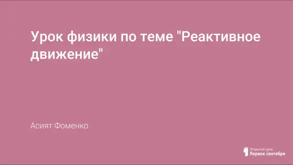 Урок по теме «Реактивное движение» проводится в 9 классе в разделе «Динамика» или «Законы сохранения». При проведении этого урока можно широко использовать межпредметные связи (в данном случае физики, биологии и истории). Связь науки с жизнью (рассмотрено практическое применение закона сохранения импульса в повседневной жизни).