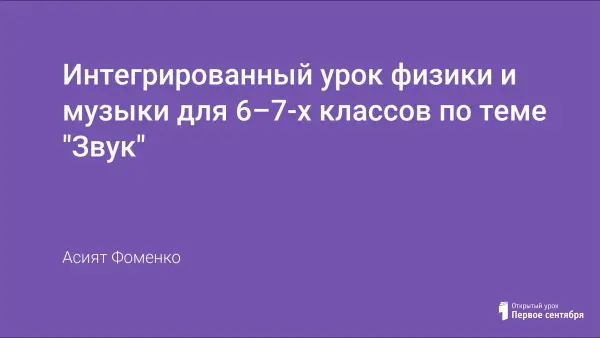 Интегрированный урок физики и музыки в 6–7-х классах для учащихся прошедших курс «Естествознание 5–6». Цели урока: повторить понятия звуковых колебаний, вспомнить характеристики и свойства звуковых колебаний; показать единство природы, взаимосвязь физики и музыки.