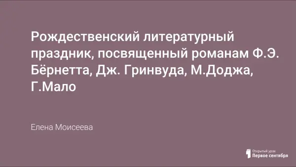 Рождественский литературный праздник, посвящённый романам Ф.Э. Бёрнетт «Маленькая принцесса», «Маленький лорд Фонтлерой», Дж. Гринвуда «Маленький оборвыш», М.Додж «Серебряные коньки», Г.Мало «Без семьи» проводится в конце 1-го полугодия для пятиклассников.