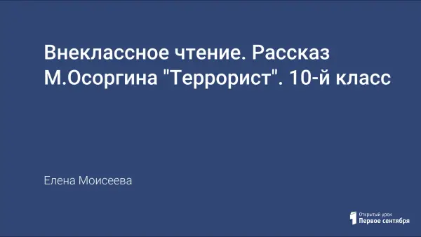 Цель урока: обсудить прочитанный рассказ, проанализировать его, познакомиться с писателем русского зарубежья М.А. Осоргиным, обнаружить, есть ли какая-то связь между романом Ф.М. Достоевского "Преступление и наказание" и рассказом "Террорист", сопоставить главного героя рассказа М.А. Осоргина с Родионом Раскольниковым.